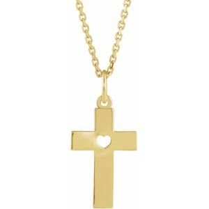 Youth Pierced Heart Cross Necklace or Pendant
